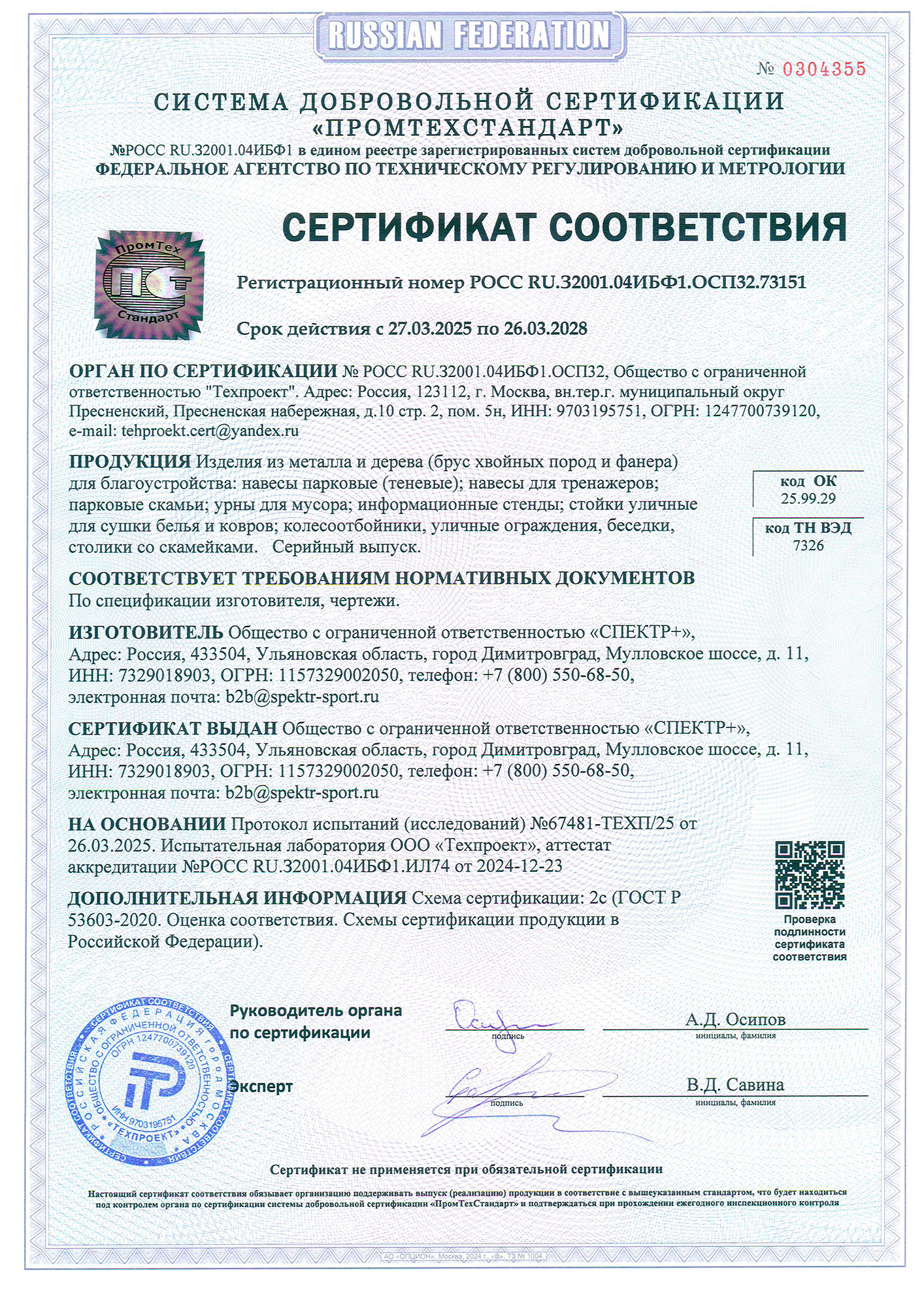 Сертификат соответствия (брус, навесы, столики, скамейки, беседки)
